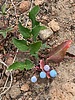 Creeping Mahonia, creeping Oregon grape. Habitat It is native to Northern America and found in US states of Minnesota, Nebraska, South Dakota, Colorado, Idaho, Montana, Oregon, Washington, Wyoming, New Mexico, Texas, Arizona, California, Nevada, and Utah. It is also found in Canada, within the provinces of Alberta and British Columbia. It is widespread, and found at low to mid-elevation on dry plateaus, in forests, and on foothills. Description berry is light to medium blue. toothed edge to leaf. Comments "Creeping Mahonia is a typical mahonia with conspicuous matt blue berries and shiny leaves. It grows as a subshrub. The yellow flowers appear in the middle of spring, and the blue berries in early summer. It is a hardy plant, tolerant of drought, frost, and heat, so it is popular with gardeners. Berries and foliage are resistant to attack by deer, and although it is evergreen, in fall the leaves turn an attracting bronze." Uses The berries are edible but are considered bitter, and used to make jellies. The Tolowa and Karok Indians of Northwest California used the roots for a blood and cough tonic. The Hopi, Paiute, Navajo, Shoshoni, Blackfoot, Cheyenne, Mendocino, and other tribes also used the plant for medicinal, food, and ceremonial needs. Native Americans also used the wood of the stem to produce yellow dyes to stain woven baskets. Source Wikipedia |