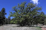 Widespread in the foothills & lower mountain elevations. 5,500-8,000 ft. After a fire, Gambel oak quickly re-establishes itself from root sprouts. Associated plant species include chokecherry, arrowleaf balsamroot, bigtooth maple, mountain-mahogany, ponderosa pine, and serviceberry. Flowers Inconspicuous flowers (unisexual catkins) occur in the spring. Description Easily recognized because of the unique lobed leaves. Small deciduous tree or large shrub. Usually 10' to 30' tall but can grow taller. Leave are very distinctive, generally 3" - 5" long & deeply lobed on each side of the central vein. The upper surface of the leaves is glossy dark green; the undersurface is paler and velvety. Leaves frequently turn orange and yellow during autumn, creating mountainsides of vivid colors. Reproduces from acorns but spreads most rapidly from root sprouts that grow from vast underground structures called lignotubers. These reproductive characteristics often result in dense groves or thickets of the trees that often cover entire mountainsides. Acorns are about 3/4" long and about 1/3 to 1/2 covered by the capsule. Acorns mature in September, turning from green to golden brown. Branches are irregular and crooked, making them flexible enough to bend without breaking. The bark of the tree is a rough brownish-gray. Comments Historically, acorns from Gambel oak provided a reliable source of food for Native Americans. Source: Wikipedia |