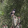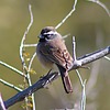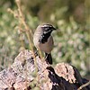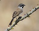 wingspan: 8.5 in weight: 0.5 ounce Its bold black throat and the white stripes above its eye extending from its bill are good clues for identifying this sparrow. As long as it can get water from its diet, it thrives in the desert country, surviving long periods of time without drinking water. Song: a high bell-like song with 2 introductory notes followed by a trill. Behavior: solitary or in pairs Breeding: monogamous. solitary. Nesting: cup shaped nest in trees or large scrub, 2 broods per year Population: Fairly common in desert and semidesert scrub, especially rocky uplands. Declining due to development. |