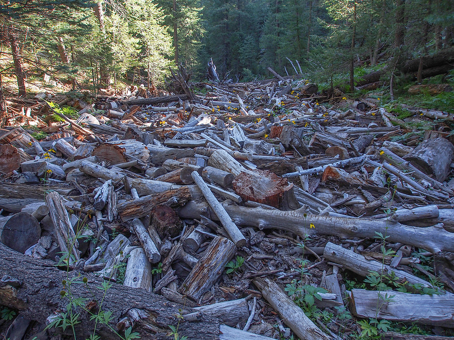 Huge pile of drift wood held back by too large trees laying across the stream. There was a noticeable lack of drift wood around the shores of the lake. I suspect it gets jammed up at the dam and is cut into short pieces as seen here and then gets flushed down stream during periods of high runoff.